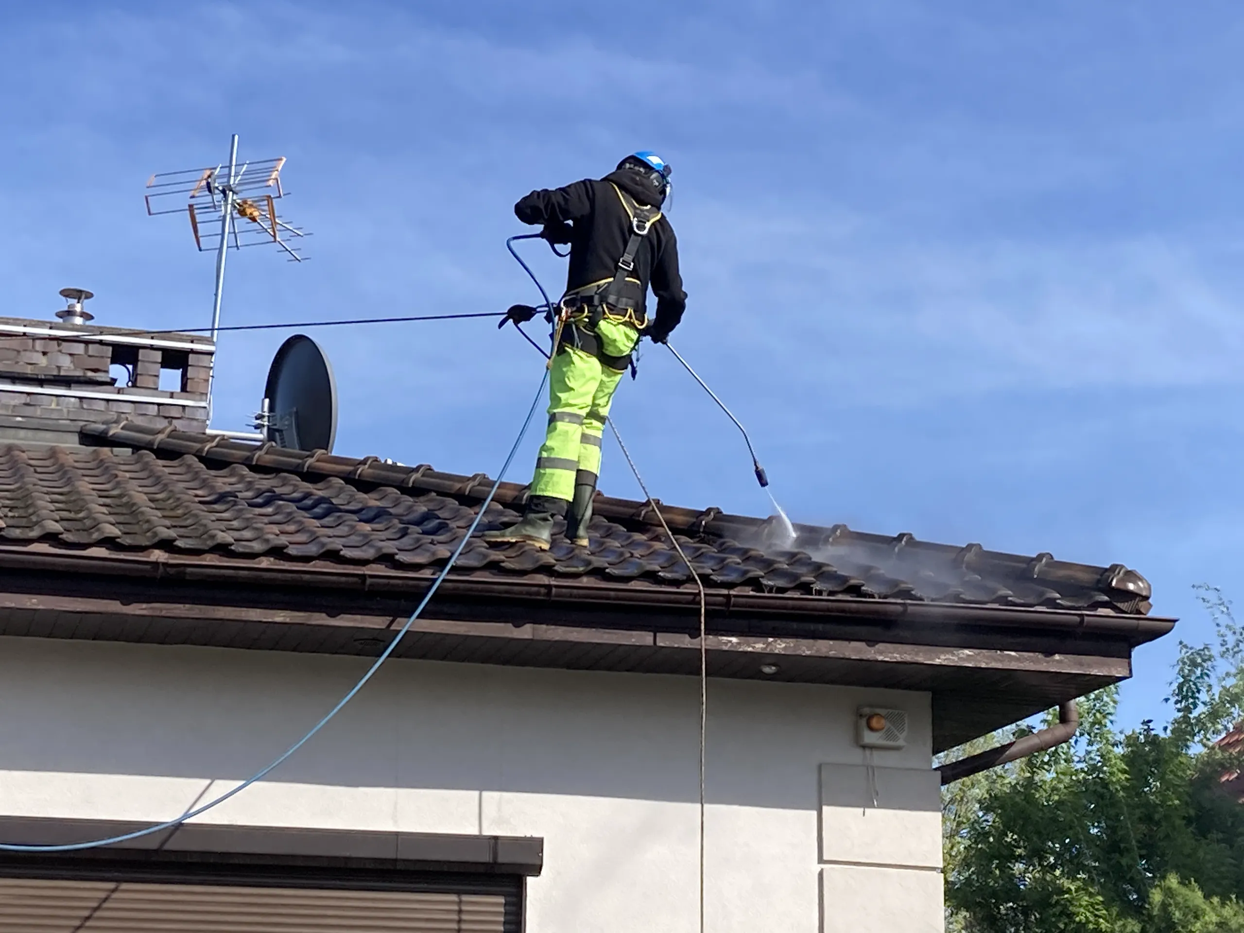 Czyszczenie dachu najlepiej wykonywać co 2–3 lata, ale to zależy od warunków lokalnych, takich jak zanieczyszczenia, porosty czy opady. Regularne czyszczenie zapobiega gromadzeniu się mchu i zabrudzeń, które mogą uszkodzić pokrycie dachowe. U nas w Frank-Clean oceniamy stan dachu podczas pomiaru i doradzamy najlepiej dobrany harmonogram usług, żeby efekt był trwały i nie trzeba było działać „na szybko”.